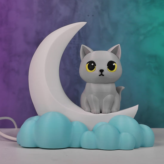 Enhance your space with this unique and charming lamp. The sculpted feline and crescent moon design, crafted with intricate detail, delivers a soft, ambient glow that promotes relaxation and serenity. This piece functions both as a functional light source and a distinguished decorative item, making it a perfect addition to a nursery, bedroom, or living area. It stands 21 cm in height.